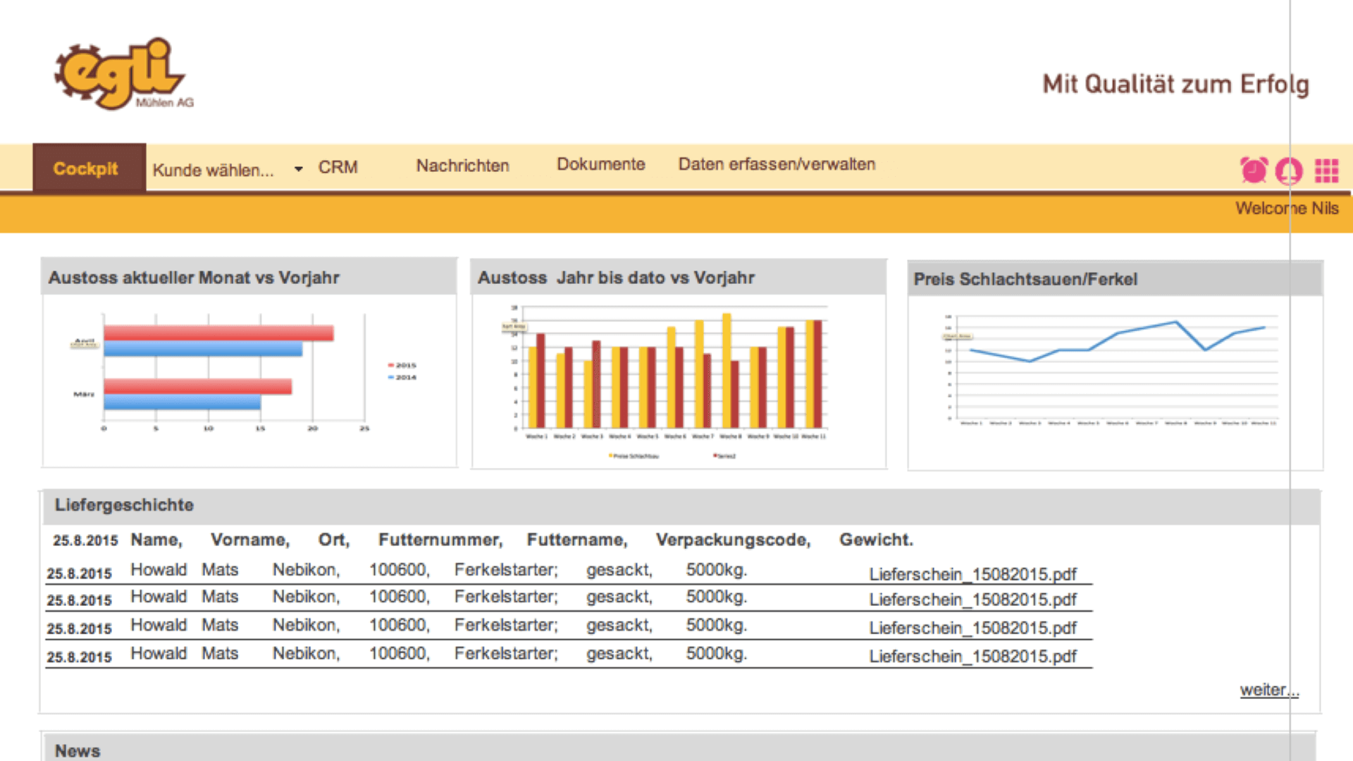 Egli Mühlen runs its business with a complex customer portal where, among other things, orders can be placed. The comprehensive platform was developed by an external company and handed over to soxes for maintenance and expansion.