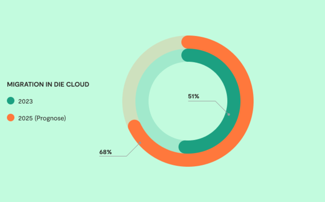 Die Softwarebranche erlebt seit einigen Jahren einen regelrechten Boom beim Einsatz von Cloud-Anwendungen. Laut MSM Research (msmag.ch) haben im Jahr 2020 bereits 20% der Schweizer Unternehmen den Schritt in die Cloud gemacht. Diese Zahl stieg bis 2023 auf 51%. Prognosen zeigen, dass bis 2025 sogar ein weiterer Anstieg auf 68% möglich ist. Das wäre eine mehr als dreifache Steigerung innerhalb von nur 5 Jahren!
