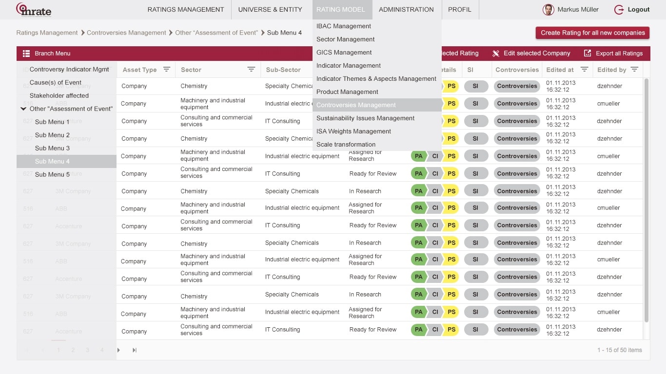 Ein Hauptziel der Lösung war es, Analysten zu ermöglichen, das Rating-Modell eigenständig zu erweitern. Dies wurde durch ein flexibles Administrations-Frontend erreicht, das Anpassungen an den hunderten Rating-Kriterien ohne IT-Support ermöglicht. Die dezentralisierte Bearbeitung an verschiedenen Standorten wird durch die Webtechnologie unterstützt.