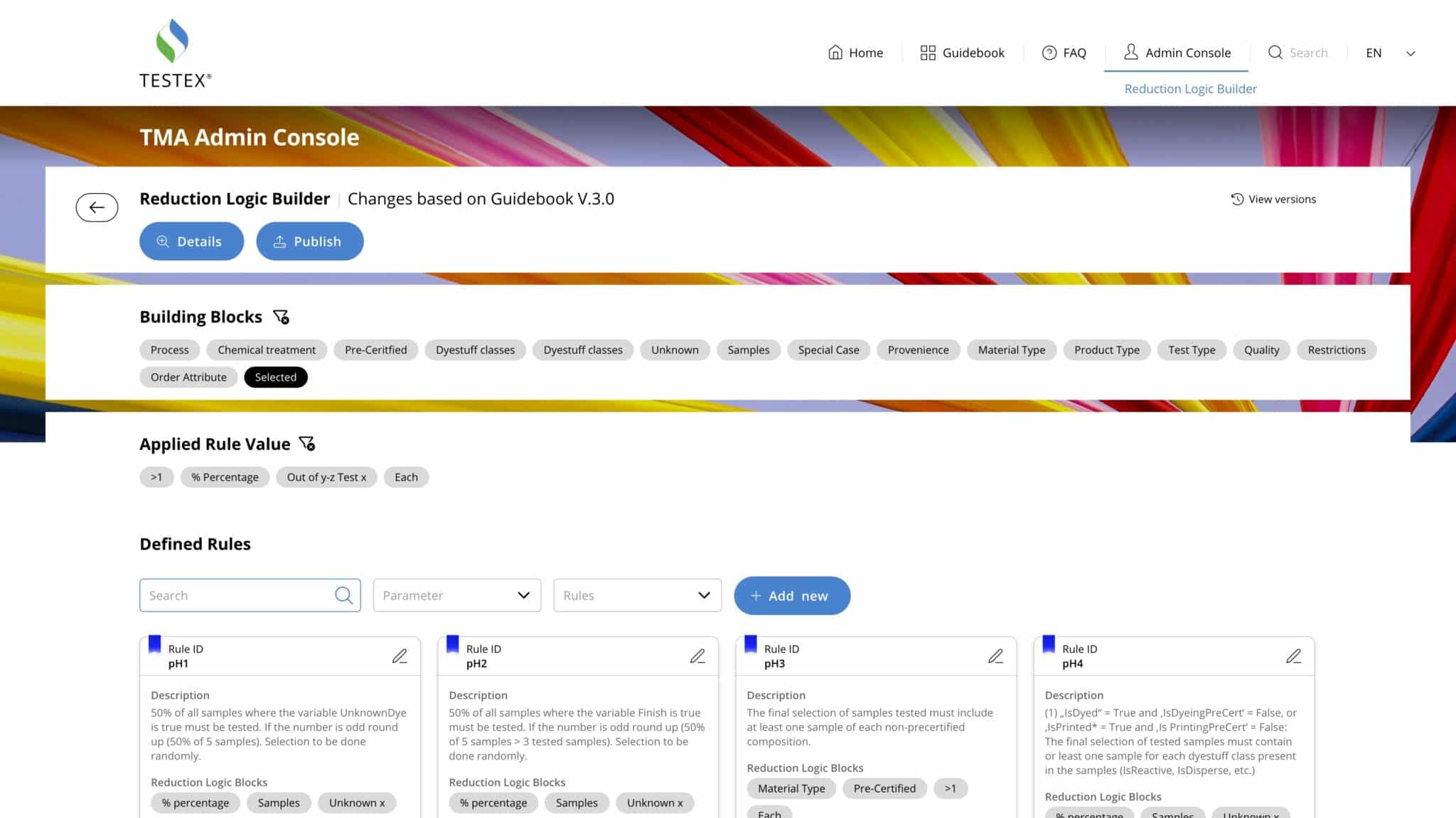 Die UniLab-Lösung digitalisiert die Auftragsabwicklung von Testex und umfasst Auftragserfassung, Planung und Abwicklung für Vertrieb und Produktion. Die Prozesskette wird über Checklisten überwacht, und alle Leistungen wie physikalische und chemische Prüfungen können kundenspezifisch angepasst werden. Verschiedene Sprachen und Masseinheiten werden unterstützt.