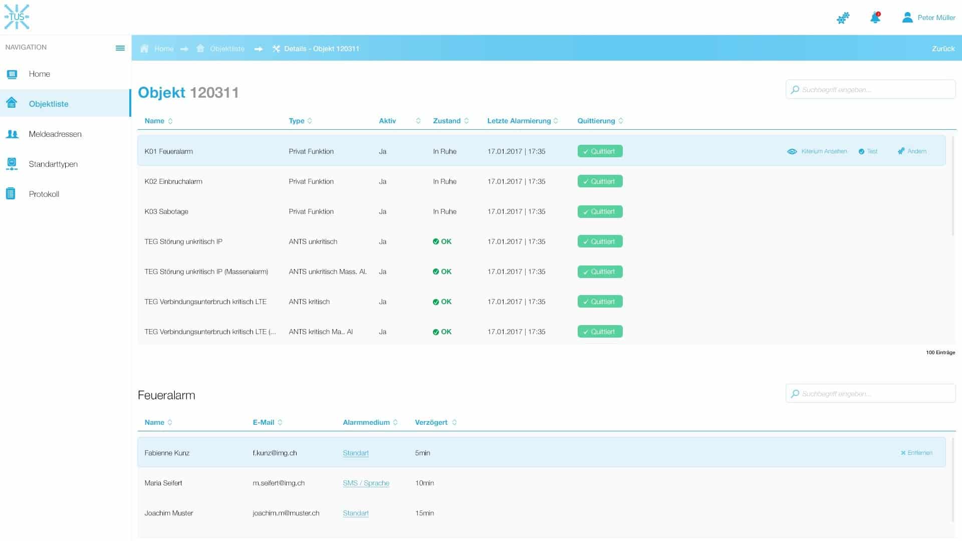 Zur Übertragung der Meldungen wird ein hochperformantes IP-basiertes Netzwerk verwendet. TUS AIN wird durch das TUS alarmDispatcher-System mit Informationen über die Zustände der Teilnehmerendgeräte und deren Sensoren versorgt. Dabei dient es hauptsächlich als sehr detailliert konfigurierbare Benachrichtigungszentrale.